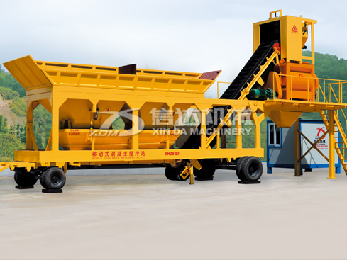 移動(dòng)式混凝土攪拌站是一種可拖掛移動(dòng)的攪拌設(shè)備,以一個(gè)集中拖掛單元,將集料、稱量、攪拌、輸送等作業(yè)于一體。適合于公路、橋梁等需要混凝土量比較小的工程移動(dòng)施工。